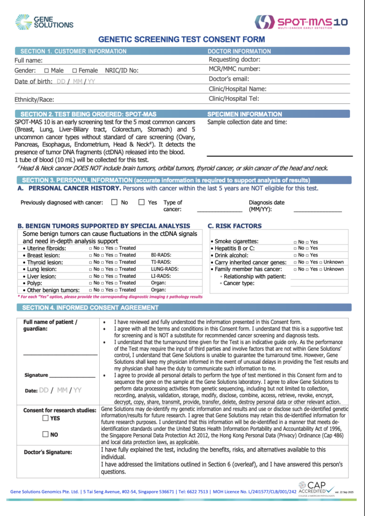 SPOT-MAS test is based on a scientific discovery of DNA fragments from tumor cells that are released into the bloodstream.